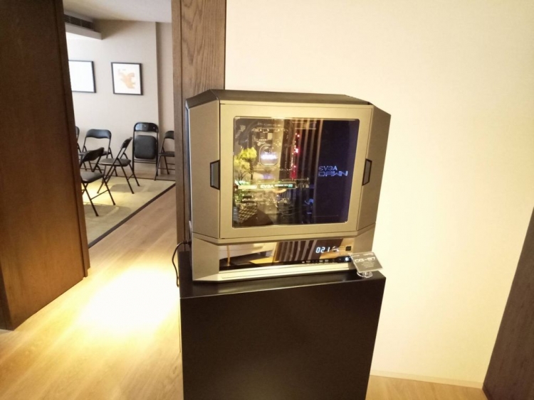 While it did no give out precise specifications yet, this is obviously a huge full tower PC case with plenty of features, including a unique front I/O panel placed on the side of the case. There is a reason for it as EVGA wants you to hold your case sideways, both in order to show all the insides as well as making it a bit more living room friendly.