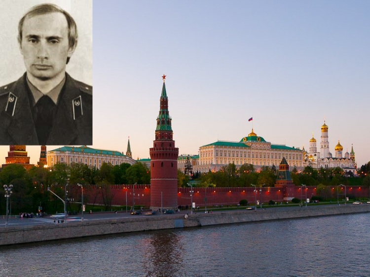 [Pictures of Kremlin and Putin when he was in the KGB courtesy of Wikipedia.]
