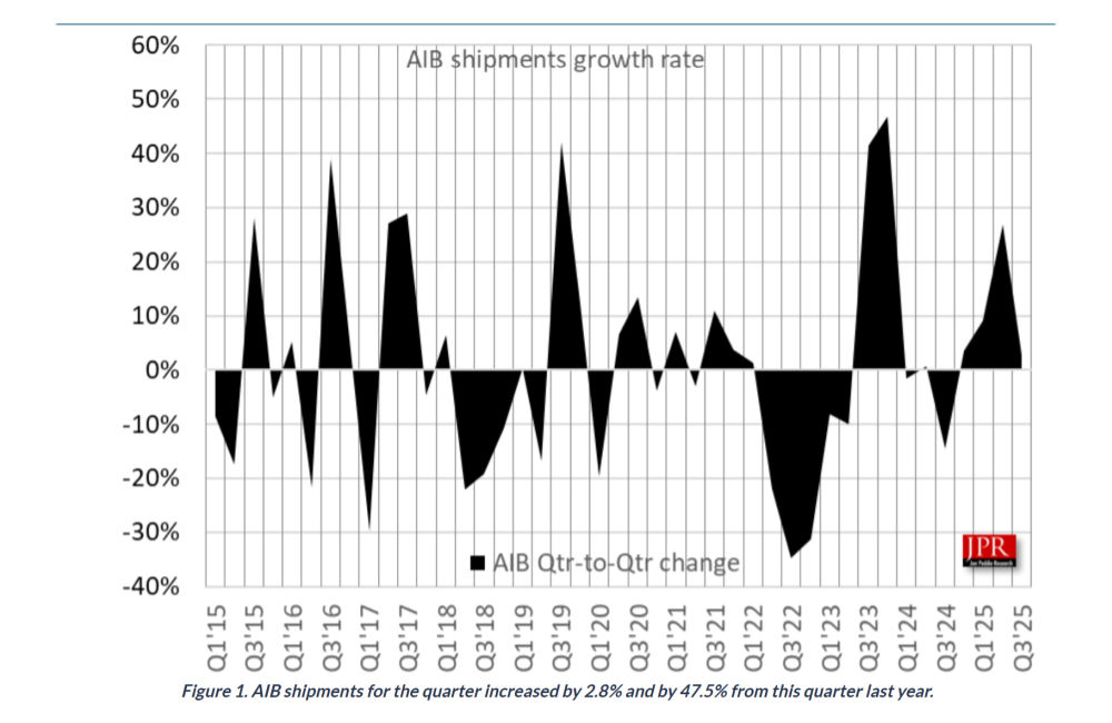 JPR attributes the increase in shipments to the panic due the pending tariff, which has made the Q2 unusually high and sapped some sales away from Q3.